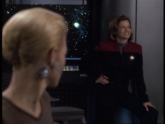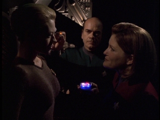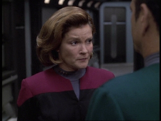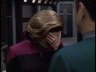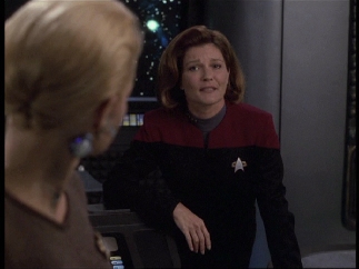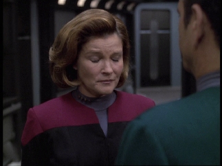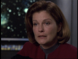 Astrometrics - Janeway almost breaks down as she says she doesn't want to lose