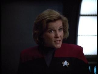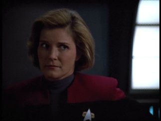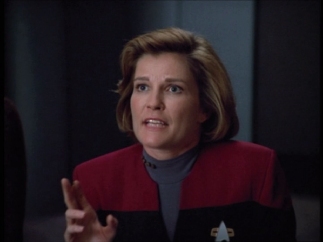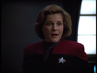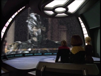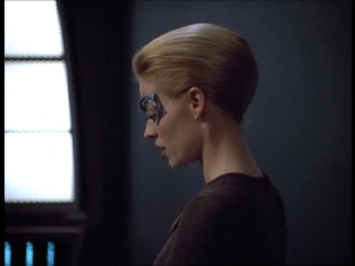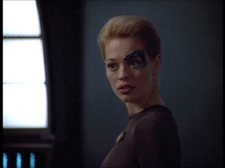 Astrometrics - Seven helpfully zaps the hirogen for Janeway