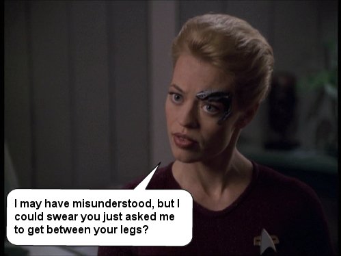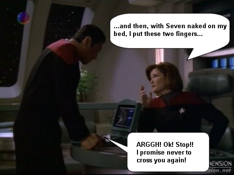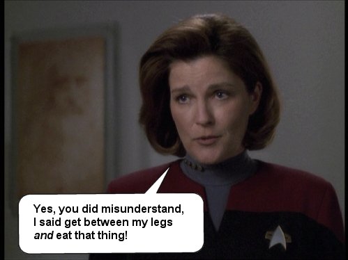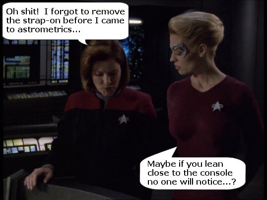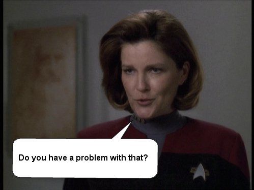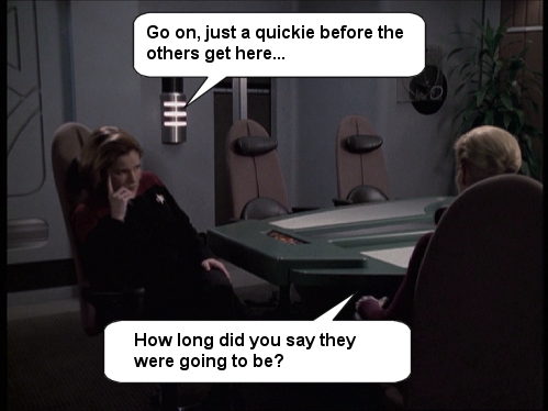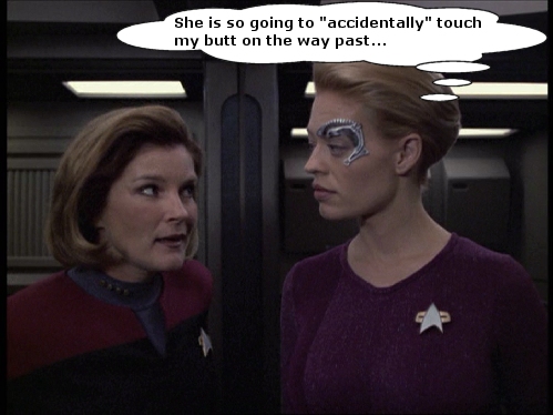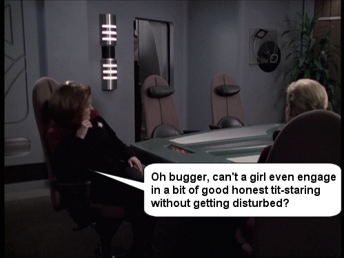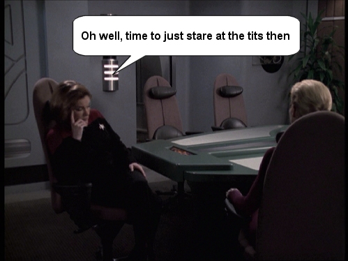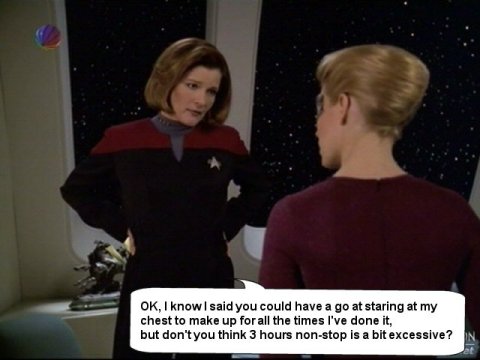 Just a few silly captions that I've come up with over on the JanewaySeven.com forums. All pictures are copyright of Paramount etc etc. This is just a bit of fun.